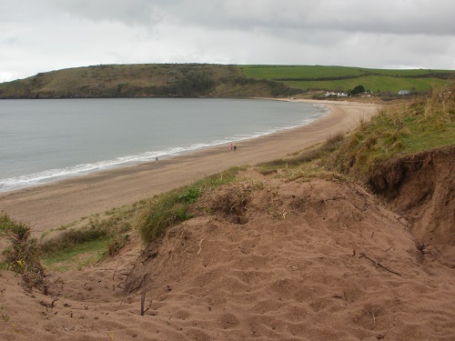 The previous 2 hours had been all road and boring and there was more road to come but at least I was heading towards the coast again at Freshwater West, a lovely huge beach and empty today. It was nice to walk along the beach for a change of walking surface although the strong wind was in my face and the short walk over the dunes to get back onto the path at the end of the beach was quite sapping on my tired legs.