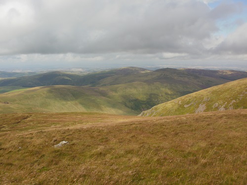 The path from the summit got less slippy but it was a lot soggier underfoot, possibly the worst of the entire walk, or maybe I was just getting on with it today and not really bothering as much about soggy paths due to it being the last day and I'd be heading home, today would be the only day that I had to be at the end by a certain time, to catch my bus, because if I missed it, it meant an expensive taxi ride. Staying the night wasn't an option as there was no bus from Kirk Yetholm the next day (Sunday) and this would also mean an expensive taxi plus buying more train tickets, so it was important to keep a good pace going early on, then hopefully be able to slow down later on in the day. The visability wasn't good at this point so at least I wasn't stopping all the time to take in the views so it wasn't long before I reached the first refuge hut.